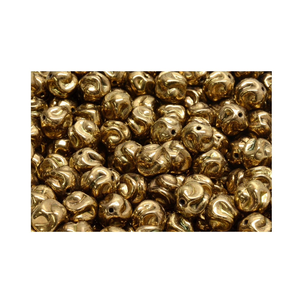 Unleash your creativity with the stunning Yarn Ball Beads, crafted by the renowned Czech manufacturer Rutkovský. These exquisite glass beads, measuring 8x8mm, feature a unique twisted texture that beautifully mimics the soft loops of yarn, adding a touch of artistry to every piece you create. The Jet Gold Bronze hue is a captivating blend of deep, rich gold with subtle bronze undertones, creating an elegant and sophisticated aesthetic that works seamlessly in various jewelry designs.