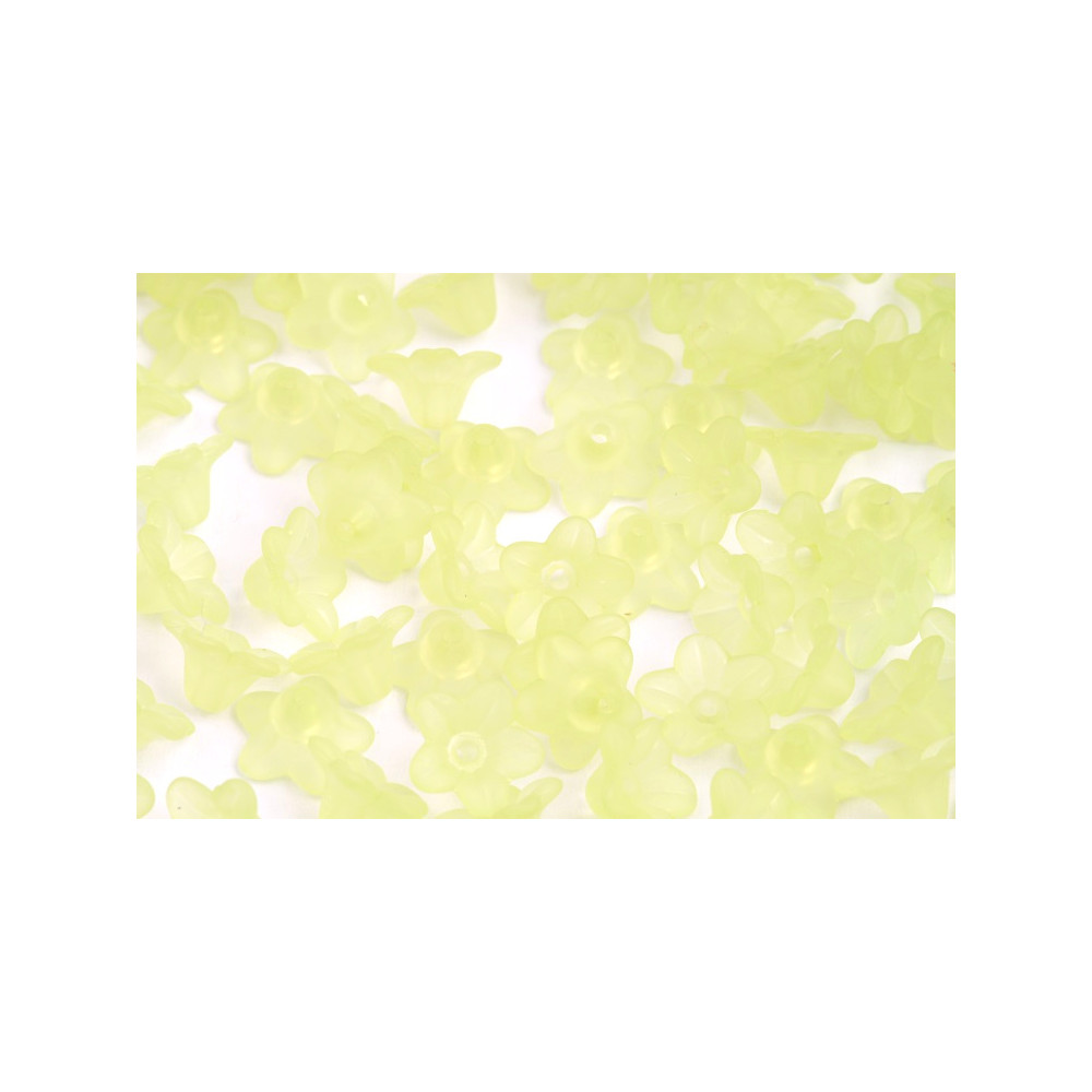 Tyto plastové korálky ve tvaru malé kytičky o velikosti 10x5 mm jsou ideální pro tvorbu jemných a hravých šperků nebo dekorací. Jejich veselá žlutá barva dodá vašim projektům svěží a optimistický vzhled.