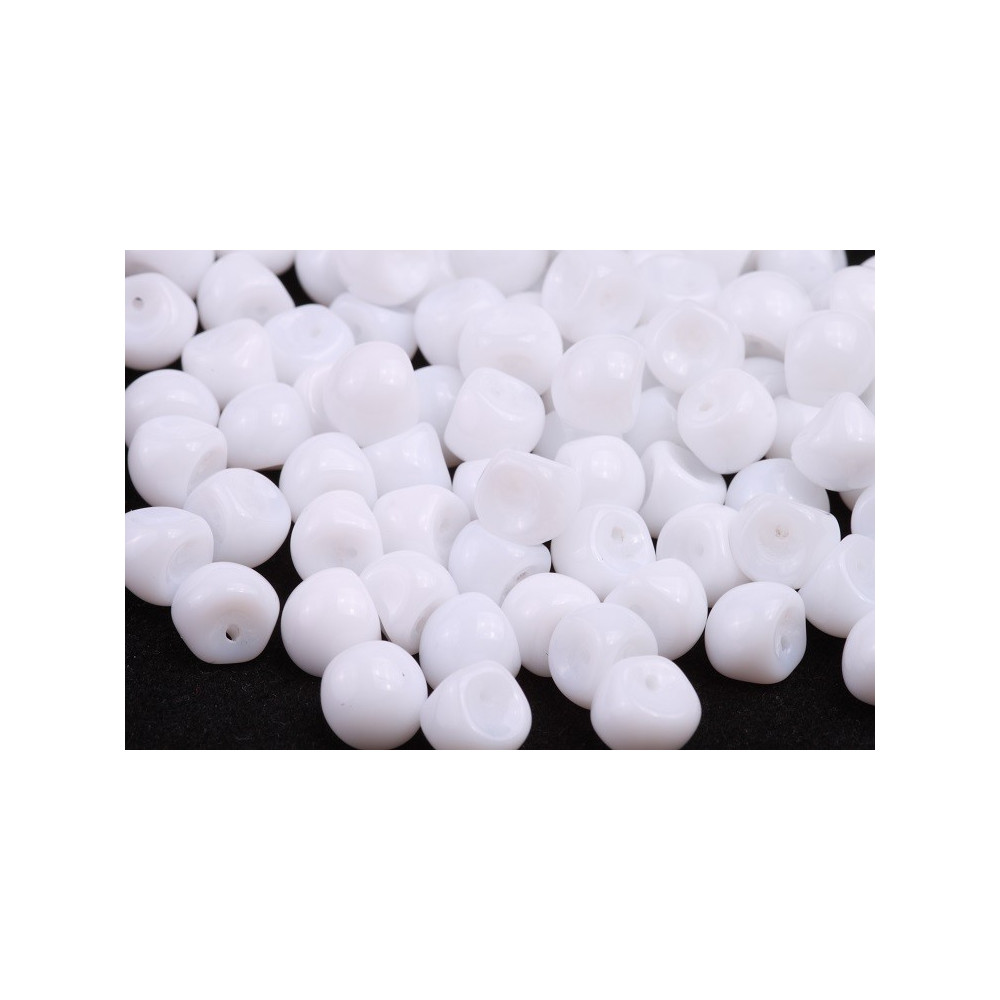 El vidrio ópalo blanco posee una luminiscencia interna única que imita el suave resplandor de las piedras preciosas, lo que lo convierte en un elemento básico en el diseño de joyería de alta gama. Estas Mushroom Button Beads 9 x 8 mm se fabrican utilizando técnicas tradicionales checas de prensado de vidrio, donde el vidrio fundido se moldea en moldes de precisión para garantizar dimensiones consistentes en cada pieza. La superficie lisa y brillante realza la calidad etérea del acabado white opal, proporcionando un fondo sofisticado tanto para paletas de colores monocromáticas como vibrantes.