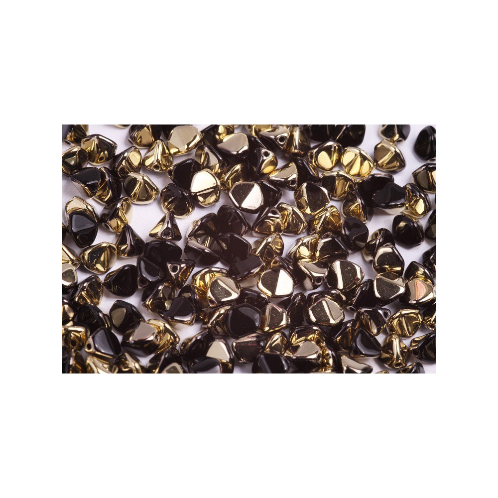 Jet Amber proporciona un contraste sofisticado entre el vidrio negro profundo y un rico recubrimiento dorado metálico, lo que convierte a estas Pinch Beads en un elemento básico para diseños elegantes. Estas cuentas de vidrio de 7 mm presentan una forma prensada única de tres lados, a menudo denominada óvalo pellizcado, que ofrece más textura y reflexión de la luz que una cuenta redonda estándar. Su geometría distinta les permite anidarse estrechamente en patrones tejidos o destacar como piezas de acento estructural en joyería ensartada.