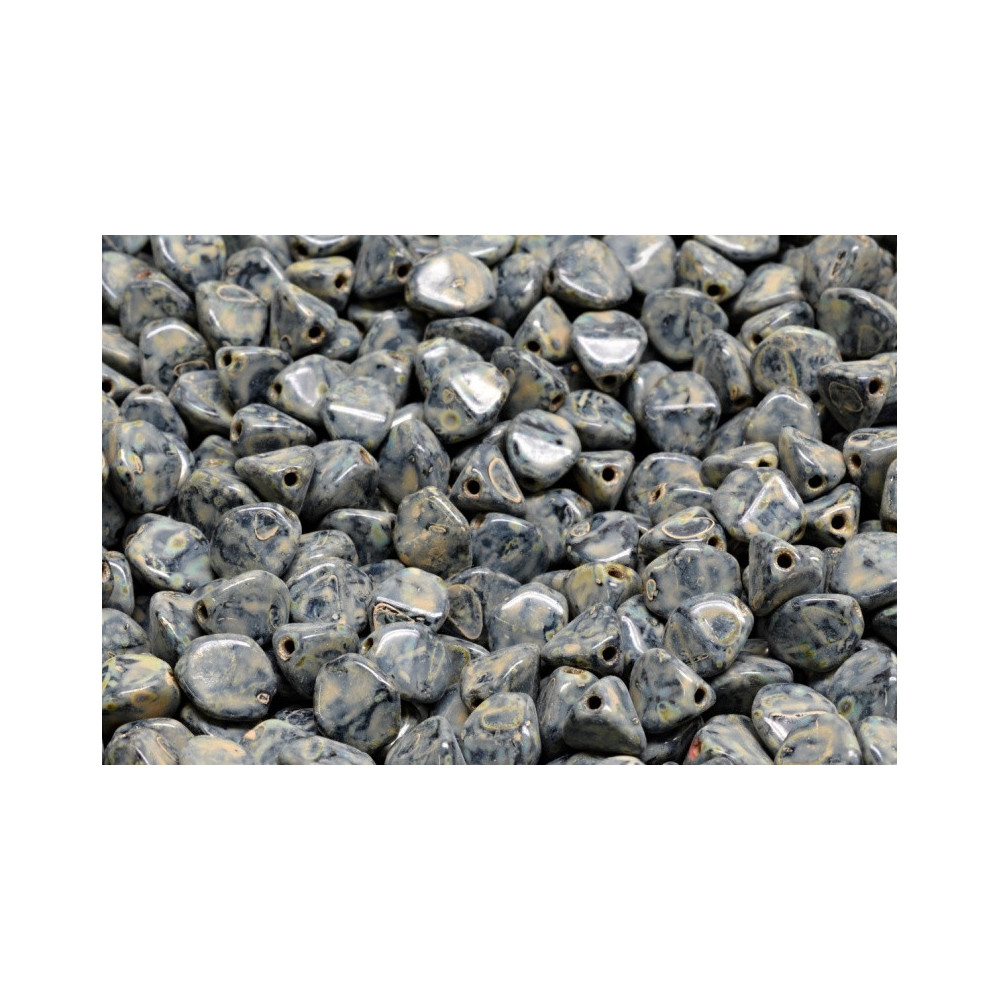 Profundos tonos verde azulado y un moteado beige rústico aportan un carácter antiguo y pétreo a estos elementos de vidrio prensados a mano. Cada pieza refleja la rica herencia del Crystal Valley, donde la familia Rutkovsky continúa una tradición centenaria en la creación de exquisitos componentes para joyería. El Picasso finish desgastado proporciona una textura orgánica mate que imita las piedras naturales, haciendo que cada cuenta sea única en su distribución de color.