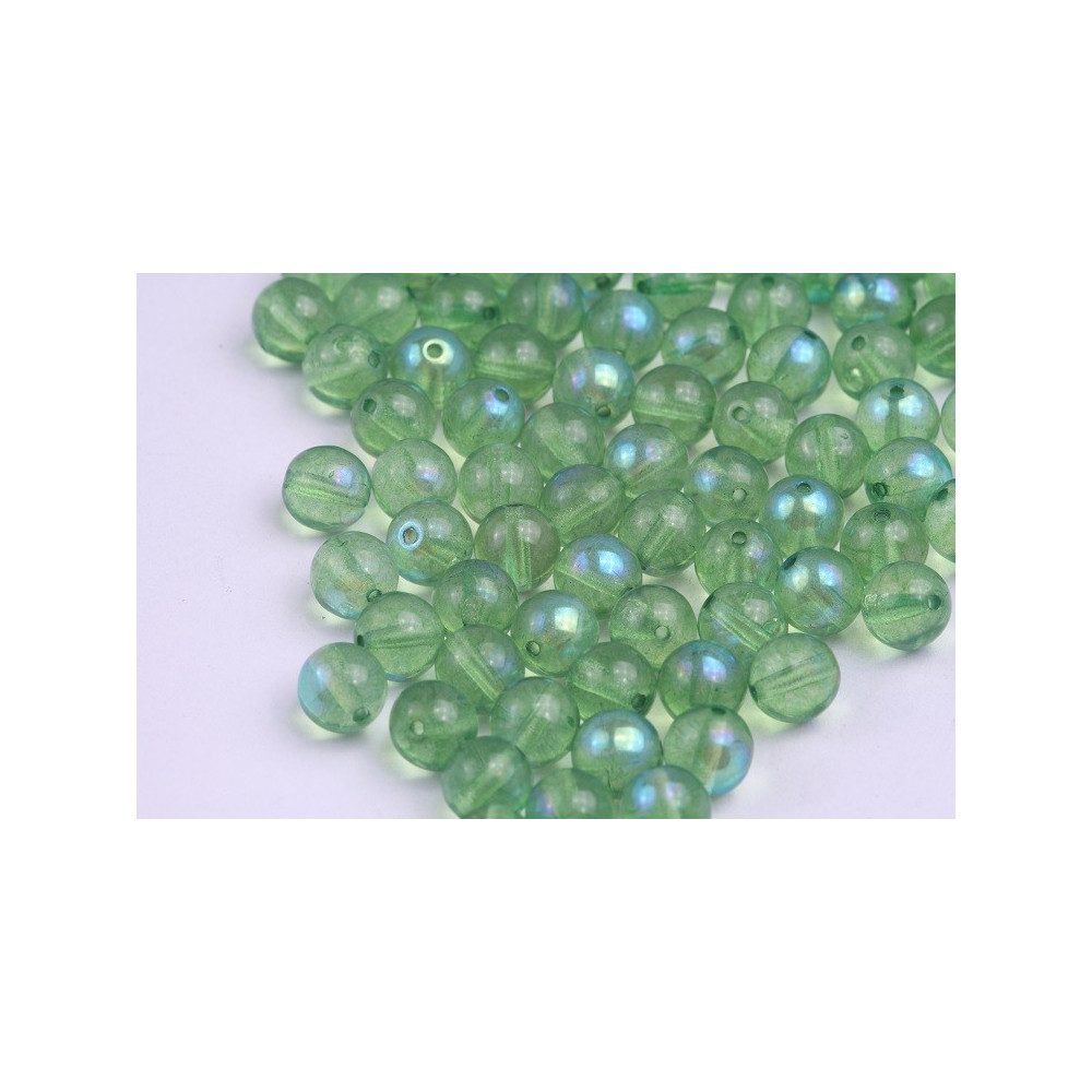 Luminosos tonos esmeralda se encuentran con un fascinante brillo iridiscente en estas esferas de vidrio de alta calidad. Estas round beads 6 mm son un elemento básico para la colección de cualquier diseñador, ofreciendo un brillante recubrimiento Aurora Borealis (AB) que refleja un espectro de azules y púrpuras fríos. Cada cuenta está elaborada por expertos para asegurar una superficie lisa y una forma consistente, lo que las hace ideales para proyectos de joyería de nivel profesional.