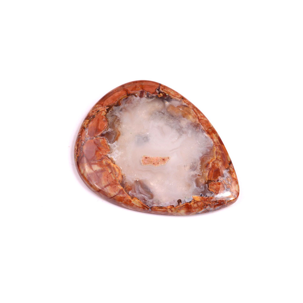 Butterfly Jasper je fascinující a jedinečný kámen, který přináší přírodní krásu do vašich šperkařských projektů. Tento kabošon je skutečným uměleckým dílem, jehož bohaté oranžovo-červené odstíny se prolínají s jemnými béžovými a šedými tóny, což připomíná fascinující struktury motýlích křídel. Právě tento vzor a barevné přechody dělají z Butterfly Jasper kabošonu ideální volbu pro šperkaře, kteří hledají originální materiál plný života a hloubky.