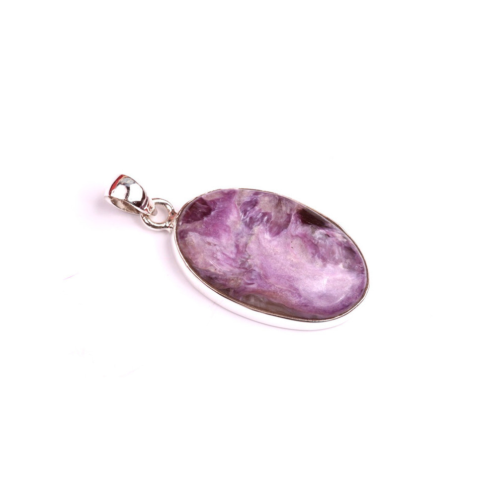 Minerální kabošon Charoite zasazený ve stříbrném rámečku o ryzosti 925/1000