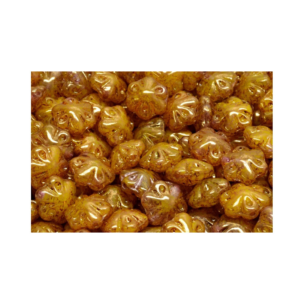 Les tons beige doré fusionnent avec un riche éclat métallique dans ces Folklore Flower Beads 11 x 11 mm, créant une esthétique vintage sophistiquée. Ces perles fleurs en verre tchèque sont fabriquées par la célèbre usine Rutkovsky, garantissant une qualité de pressage constante et une durabilité supérieure pour les créateurs de bijoux professionnels. La surface présente un marbrage subtil de type travertine qui ajoute de la profondeur et une sensation organique et artisanal à chaque pièce individuelle.