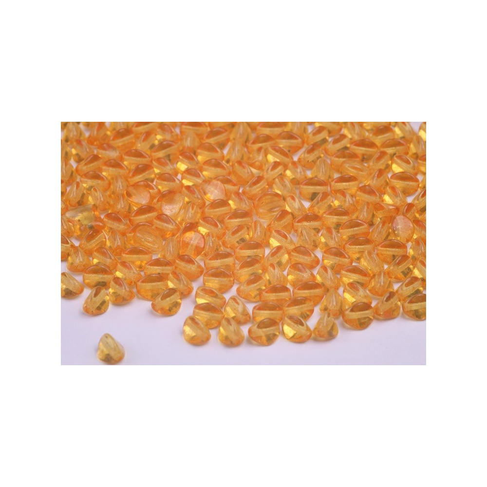 Le verre en fusion de la légendaire Crystal Valley est pressé à la main dans ces formes précises à trois côtés pour créer un élément de design polyvalent. La finition transparent orange permet à la lumière de pénétrer dans le verre, créant une lueur interne chaleureuse qui imite l'apparence de la citrine naturelle ou de la pierre de soleil. Ces perles en verre de Bohême sont fabriquées par la famille Rutkovsky, garantissant que chaque pièce porte le poids d'un héritage verrier séculaire et d'une précision artisanale.
