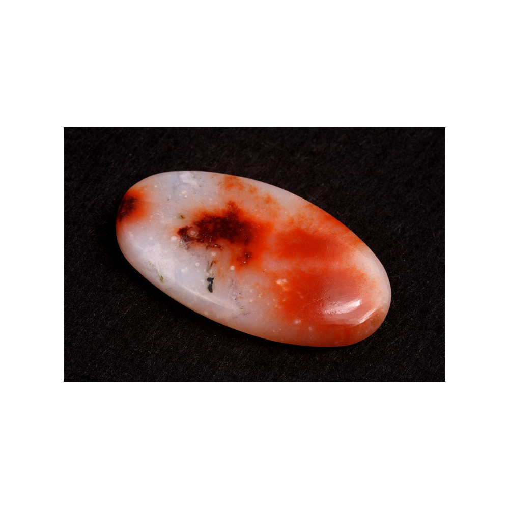 Thomsonite je nádherný kámen se zářivými červenými a oranžovými inkluzemi na jemném bílém a šedém podkladu. Tento vzácný minerál z rodiny zeolitů je oblíbený pro své jedinečné vzory a barevné kontrasty, díky čemuž je ideální pro šperkařské i dekorativní projekty.
