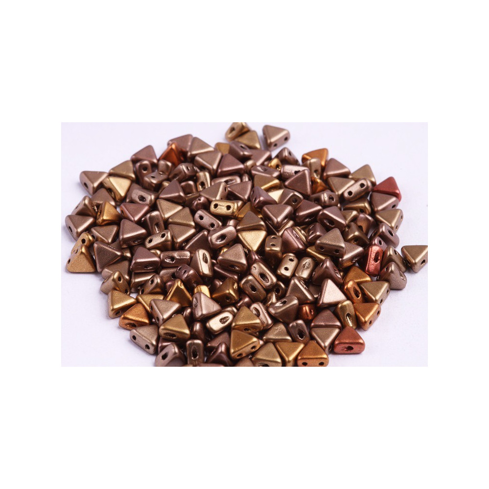 Per un contrasto sorprendente, abbina questi toni metallici con accenti nero jet o antracite profondo per enfatizzare il calore del vetro. Questi triangoli Khéops® par Puca® sono essenziali per ogni designer che desideri sperimentare con la tessitura geometrica e tecniche di design del gioiello strutturale che richiedono dimensioni precise e ripetibili per ogni perlina del progetto.