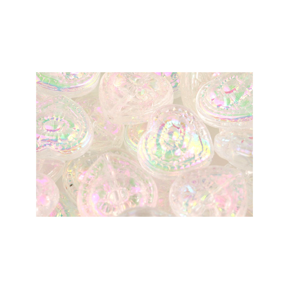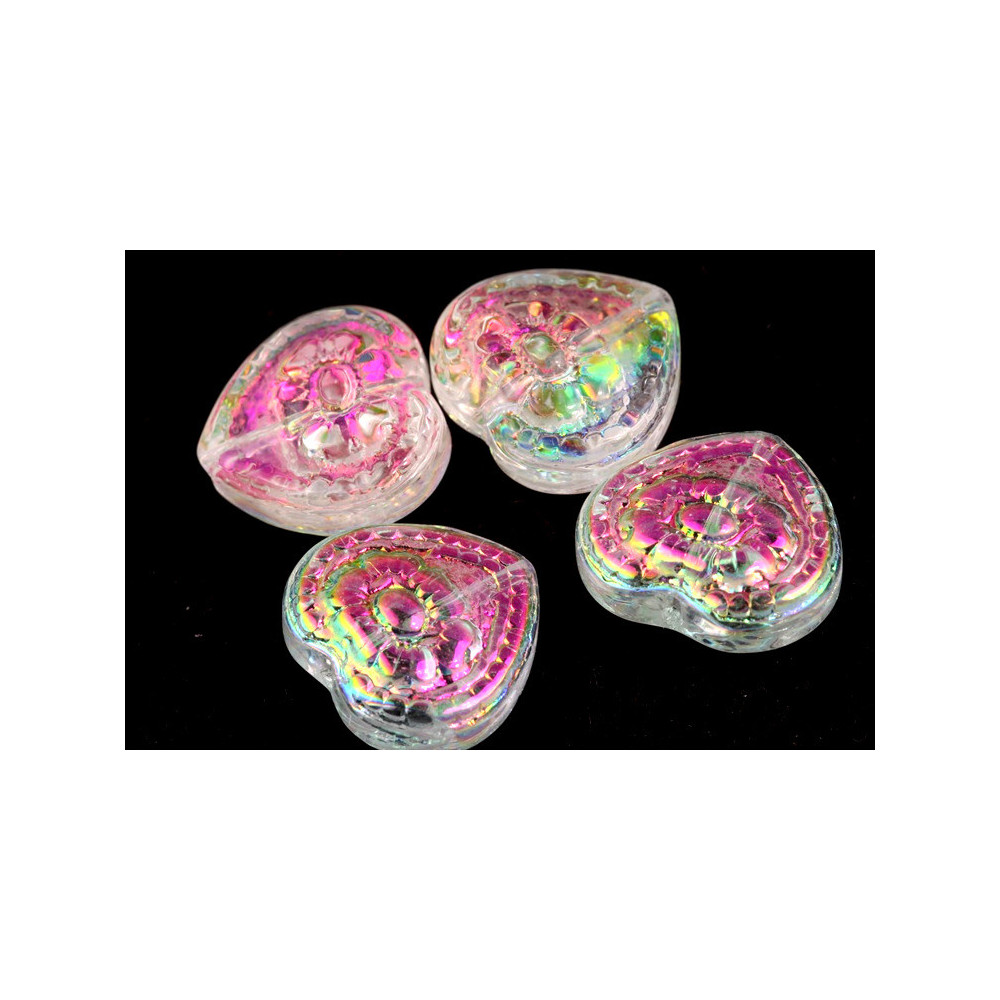 Transform your jewelry designs into pieces of wearable art with these stunning heart-shaped glass beads. Featuring a sophisticated embossed pattern and a high-quality iridescent finish, these beads emit a captivating glow that shifts with every movement. The clear crystal base paired with a shimmering Aurora Borealis effect creates a dreamlike aesthetic perfect for modern romantic styles.
