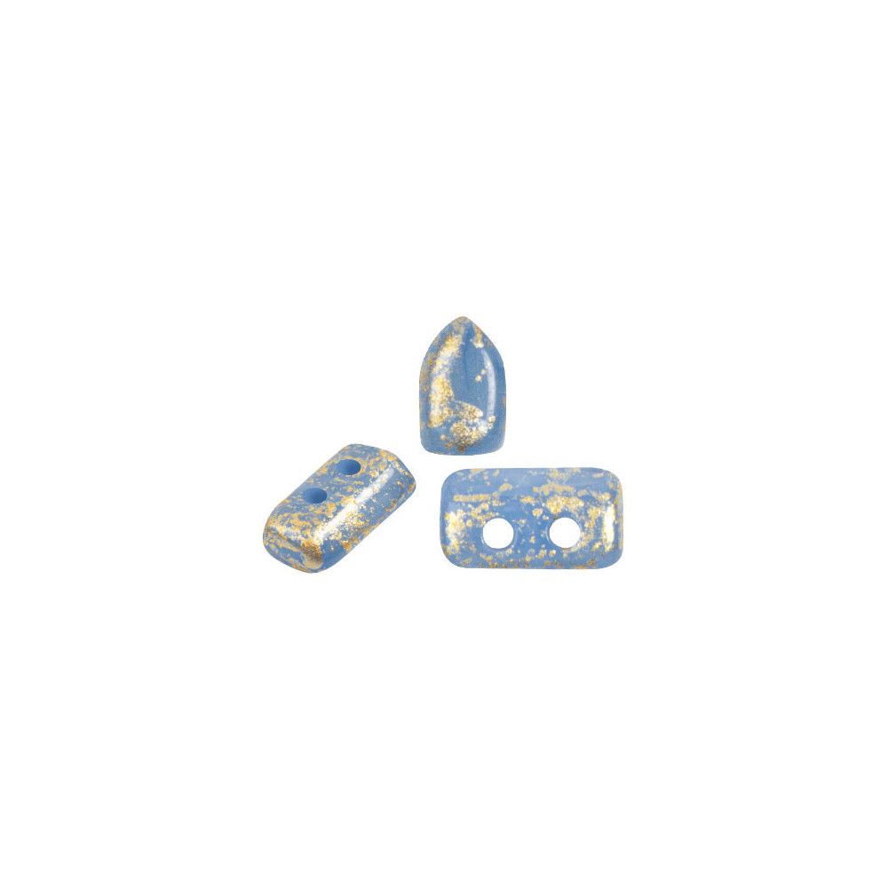 Le perline Blue Opal Splash Piros® par Puca® incarnano questa collaborazione interculturale, offrendo una forma rettangolare elegante con una parte superiore delicatamente curva. La finitura presenta una base blu cielo lattiginosa e serena, ornata da macchie irregolari e organiche di oro scintillante, creando una lussuosa trama visiva che ricorda l'acqua baciata dal sole o antiche tessere di mosaico in una finitura glossy.