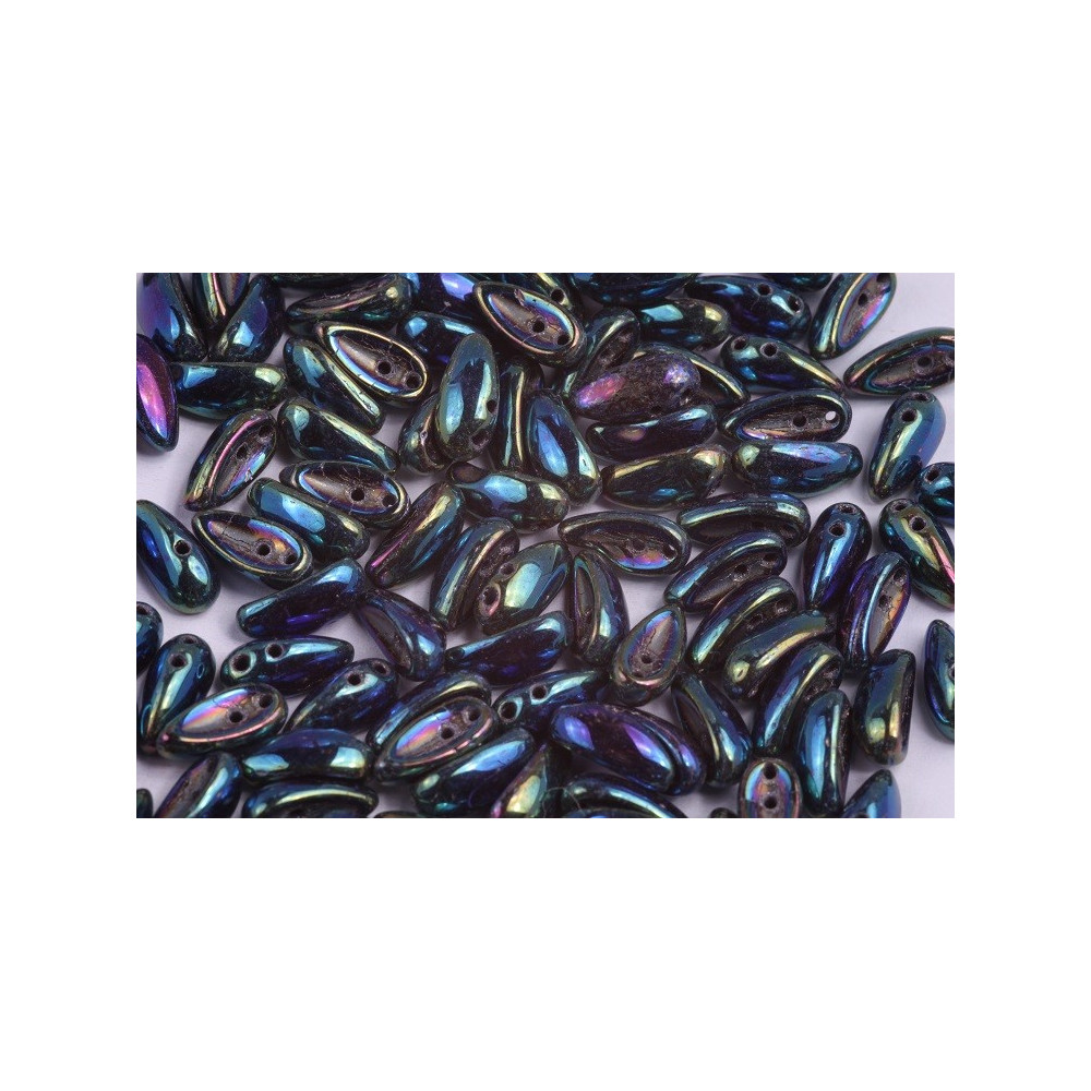 Perle di vetro Preciosa Chilli in Black Opaque Green Iris 4x11mm Blue 23980/21455