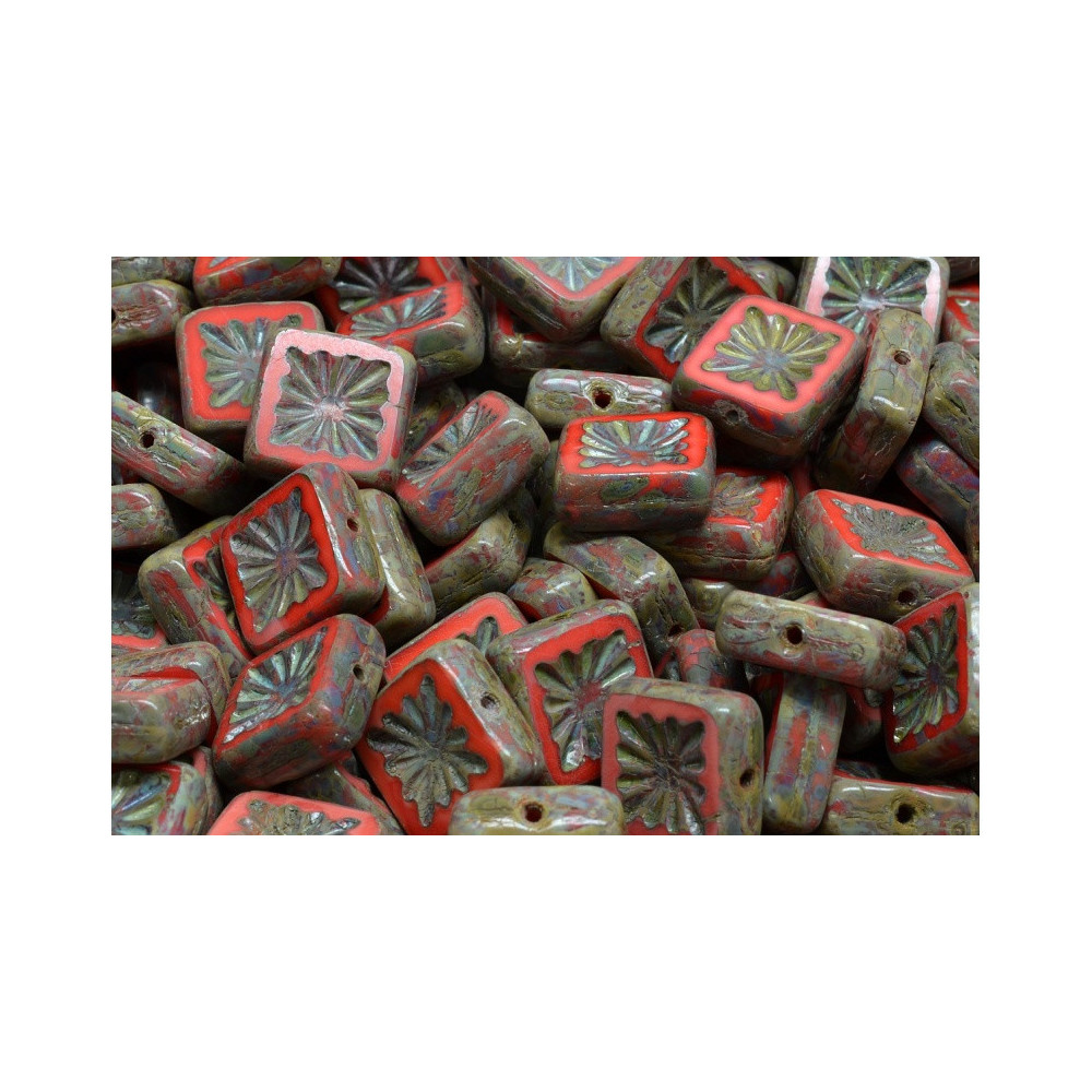 TCB Squared Kiwi Beads Dimensioni cca 10X10 mm Foro: 0,8 mm confezione: 4 Pezzi Colore: Rosso...